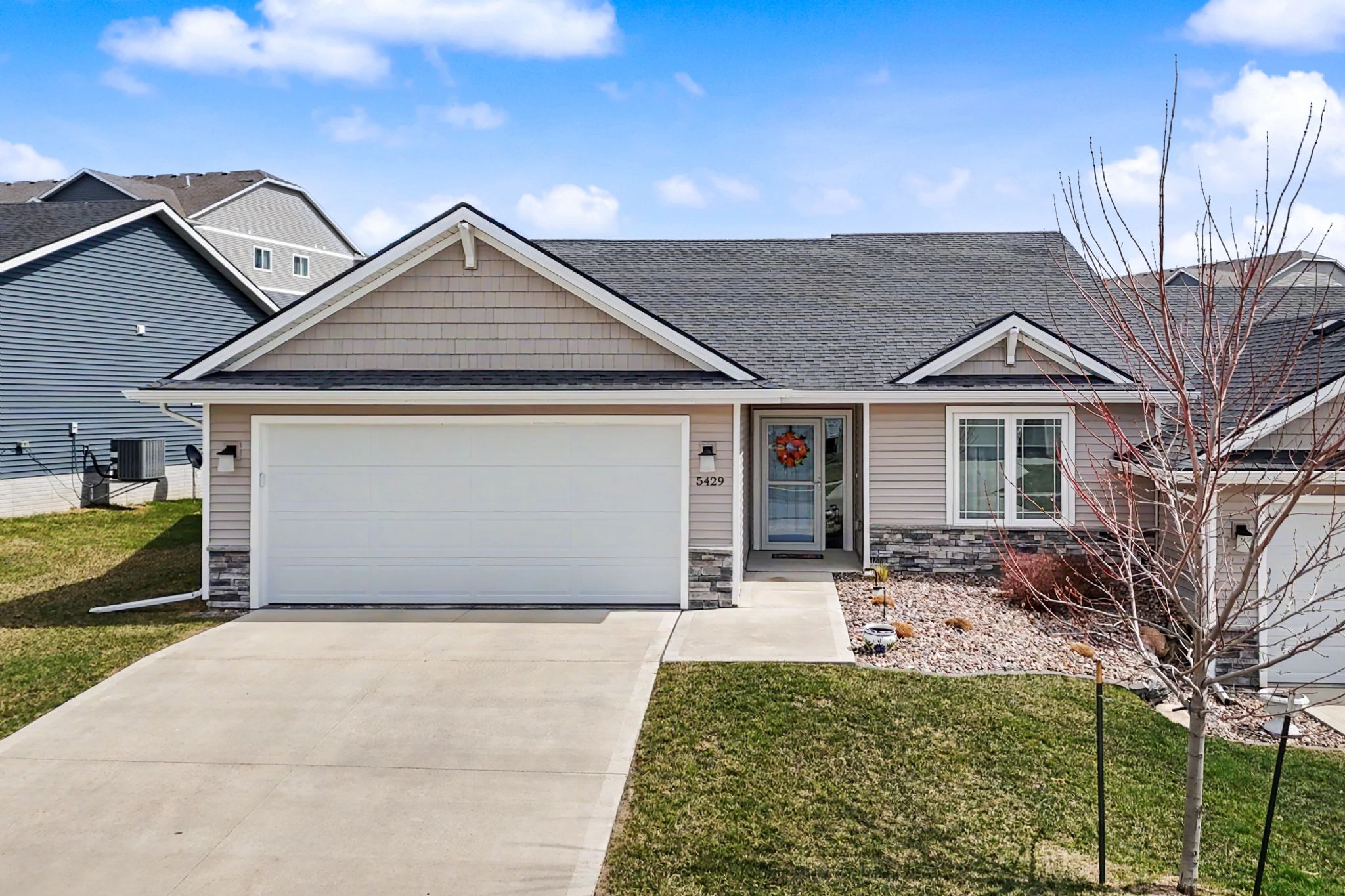 Step into effortless living with this beautifully designed zero-entry ranch townhome, ideally located in the heart of Ankeny. From the moment you arrive, you’ll be captivated by the lush, irrigated lawn, meticulously maintained landscaping, and the warm welcome of a covered front porch. Inside, you’re greeted by stunning Luxury Vinyl Plank (LVP) flooring that seamlessly guides you into a bright, open-concept living space. The expansive main area combines the living room, dining space, and kitchen under a soaring vaulted ceiling, creating an airy, inviting atmosphere that’s perfect for both entertaining and everyday living. The living room offers plush carpeting, a cozy electric fireplace, and plenty of windows that flood the space with natural light. Just steps away, the dining area comfortably accommodates gatherings of family and friends and opens to a private concrete patio—ideal for grilling and outdoor enjoyment. Prepare to be wowed by the kitchen, thoughtfully designed with sleek LVP flooring, elegant quartz countertops, a beautifully coordinated tile backsplash, and a center island with breakfast bar seating. The stainless steel appliances are all included, making this space as functional as it is stylish. The primary suite is a true retreat, featuring soft carpeting, a tray ceiling, a walk-in closet, and a luxurious en-suite bath complete with dual sinks, a quartz vanity, and a step-in shower. A second bedroom, additional full bath, and convenient main-level laundry (with washer and dryer included) add to the home’s practical appeal. Additional highlights include ceiling fans in both bedrooms and the living room, all window treatments included, and direct access to an oversized two-car garage with built-in shelving—perfect for storage and organization. Enjoy truly low-maintenance living with exterior upkeep handled by the management company, including lawn care, landscaping, and snow removal—giving you more time to enjoy the things you love. Homes like this don’t stay on the market long—schedule your private showing today and experience the perfect blend of comfort, style, and convenience!